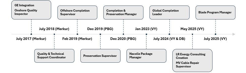 This diverse background has given me a comprehensive understanding of wind turbine project lifecycles and the ability to adapt quickly to different phases and challenges.